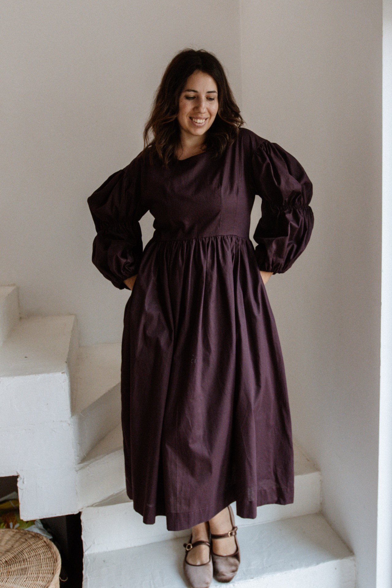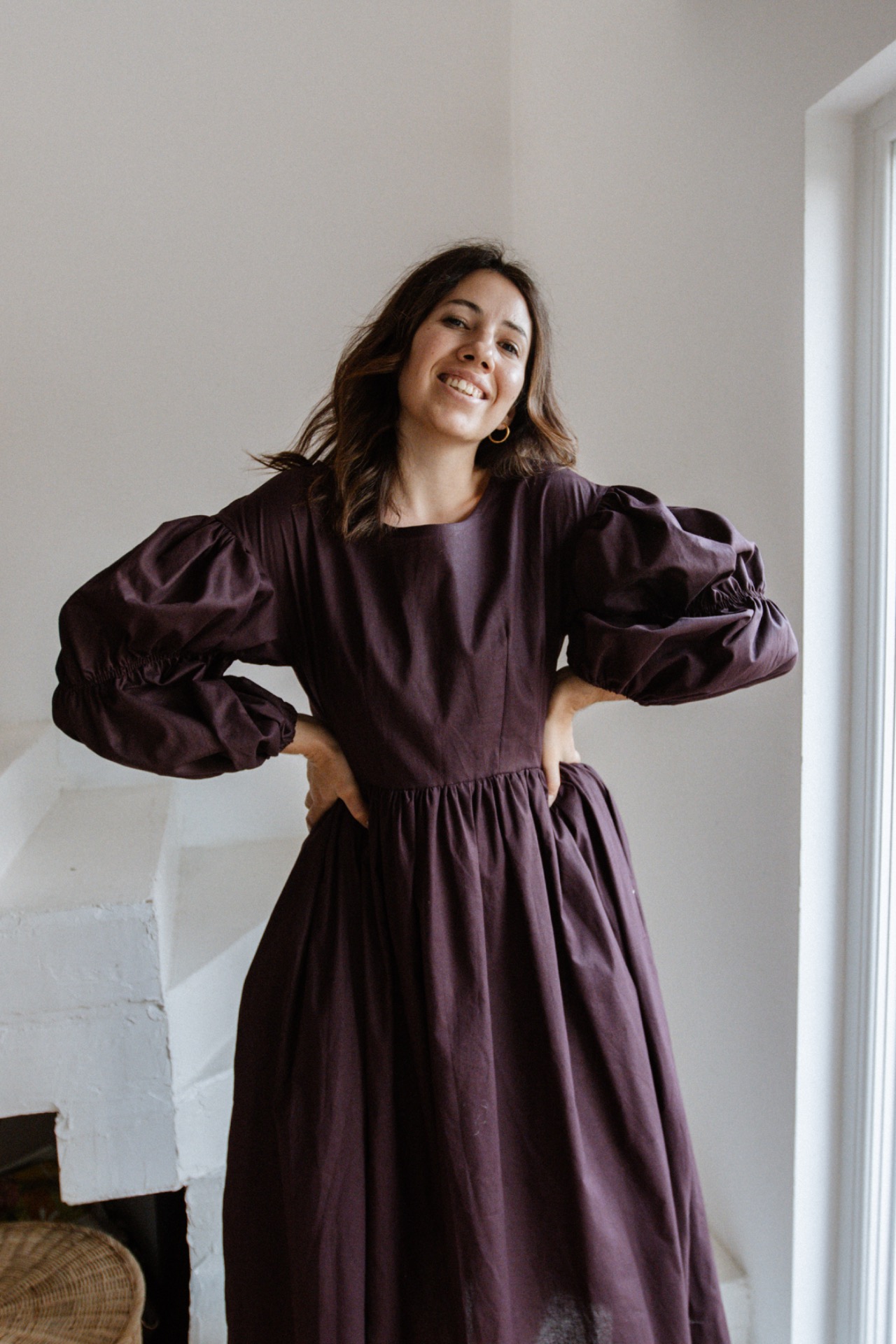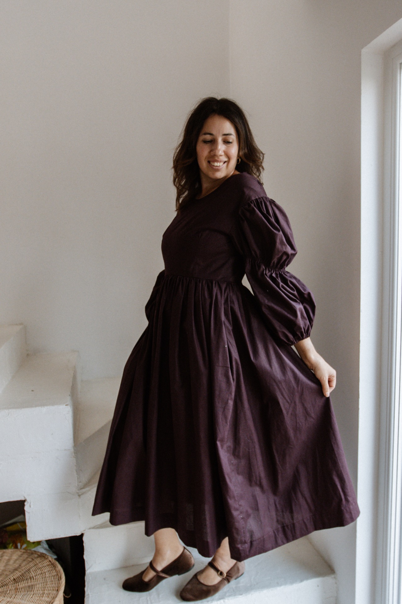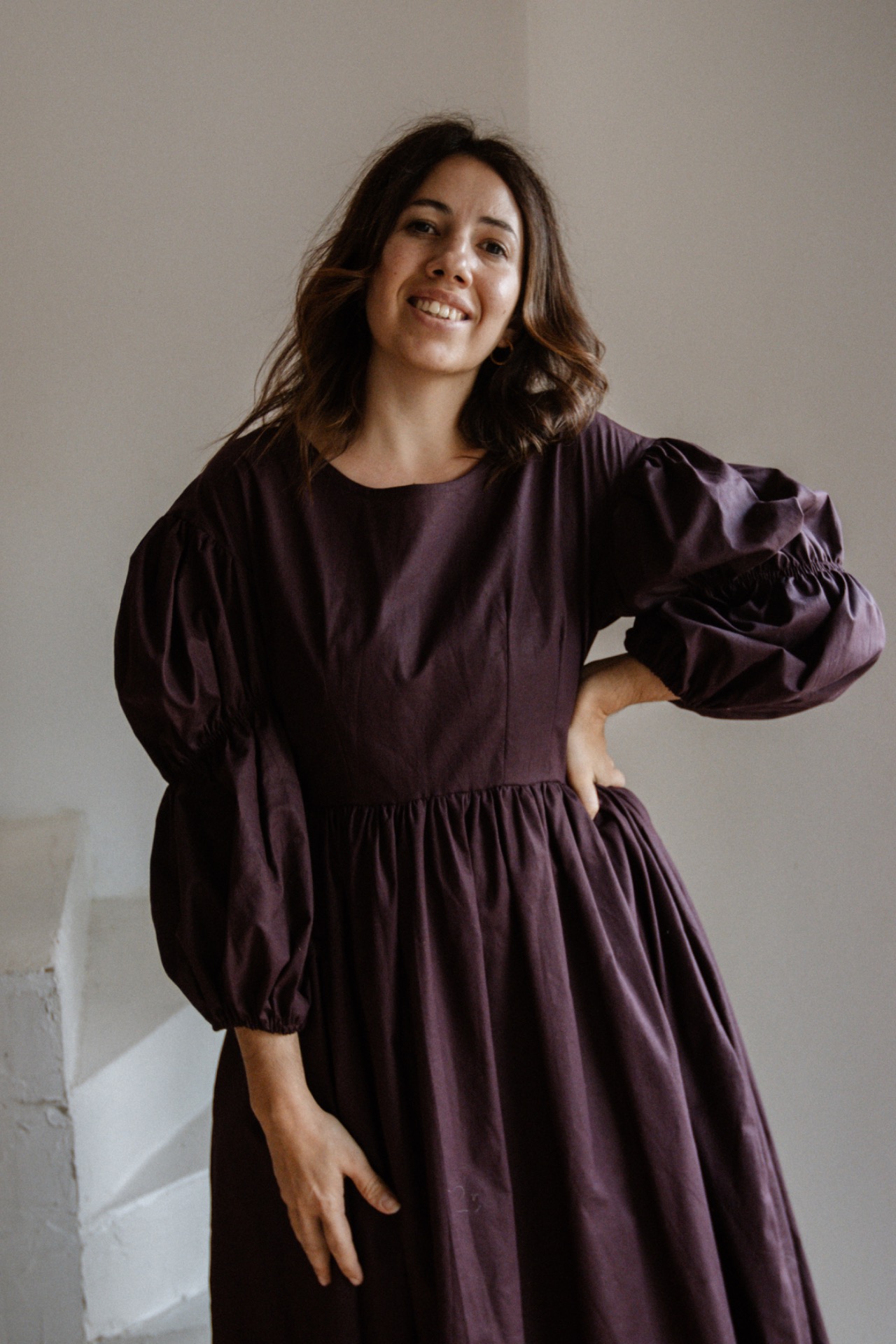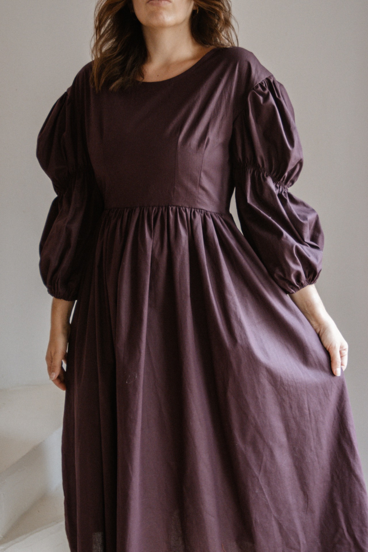Šaty majú padnuté rukávy a zúžený pás. Šaty vieme ušiť aj z inej farby bavlny. Pre možnosti farieb nám napíšte na email shoplittlesouls@gmail.com alebo správu na instagrame.
