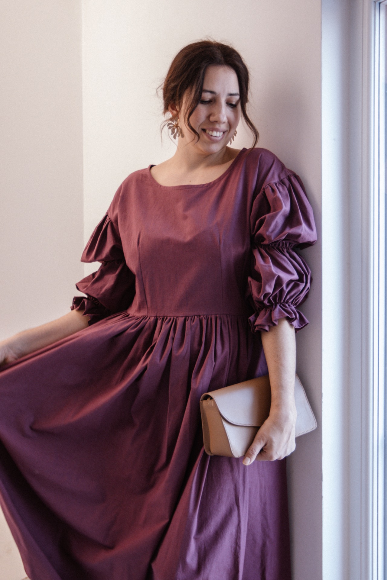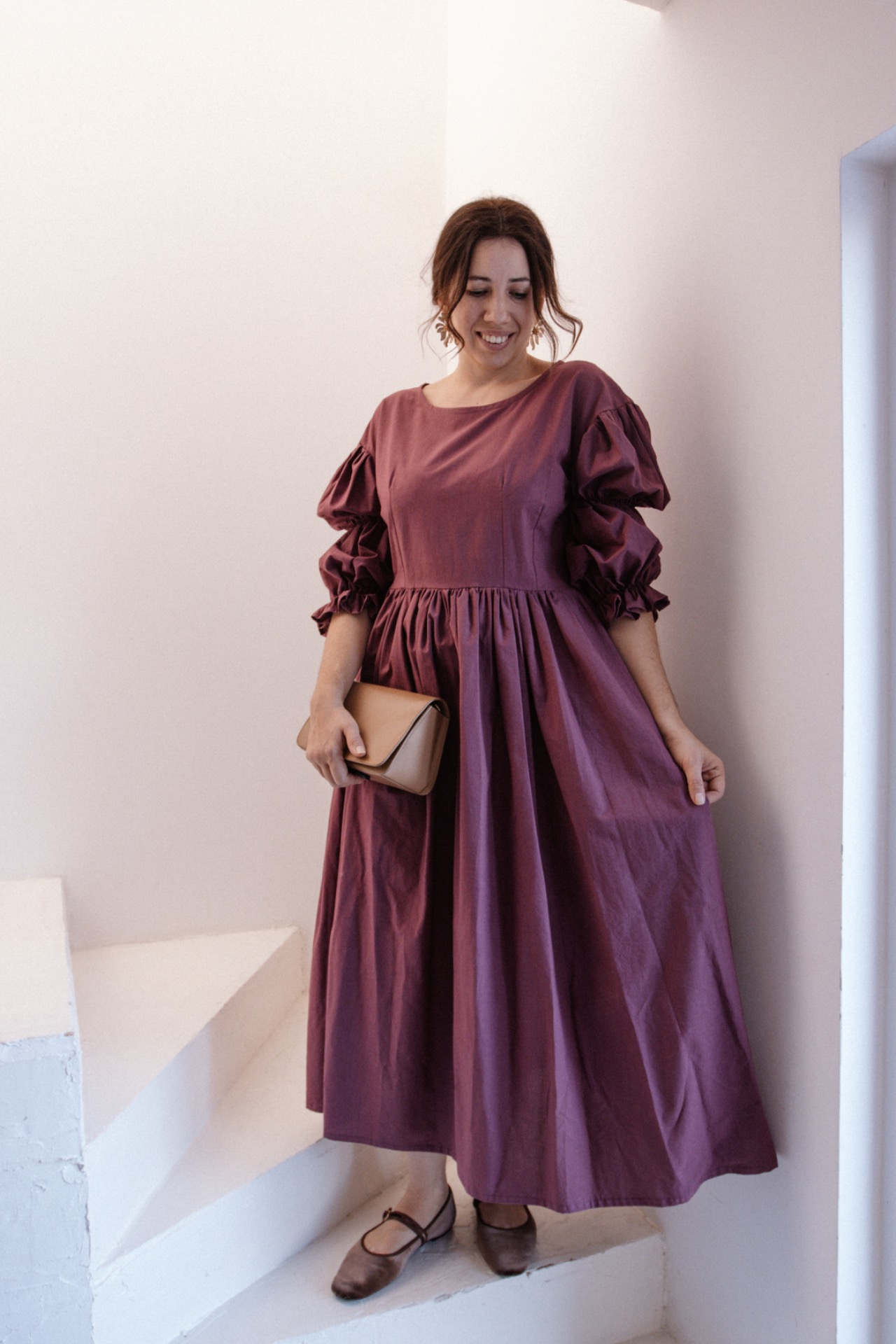 Šaty majú padnuté rukávy a zúžený pás. Šaty vieme ušiť aj z inej farby bavlny. Pre možnosti farieb nám napíšte na email shoplittlesouls@gmail.com alebo správu na instagrame.