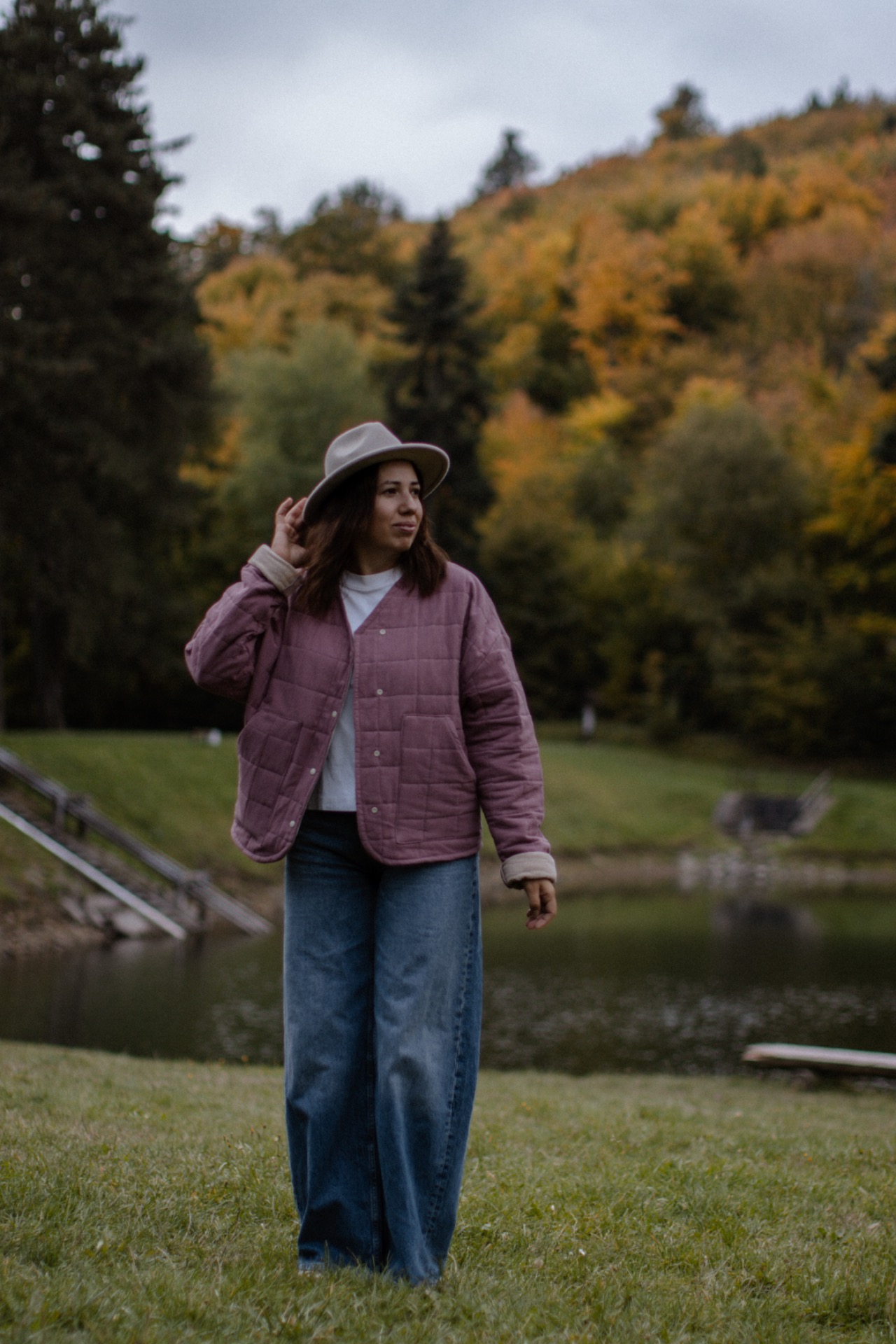 Prechodná bundička ušitá z našej vlastnej prešívanej bavlnenej alebo ľanovej látky. Ohreje vás v zime pod kabátom a obľúbite si ju hlavne na jar a na jeseň. Strihovo je mierne oversize s padnutými rukávmi.