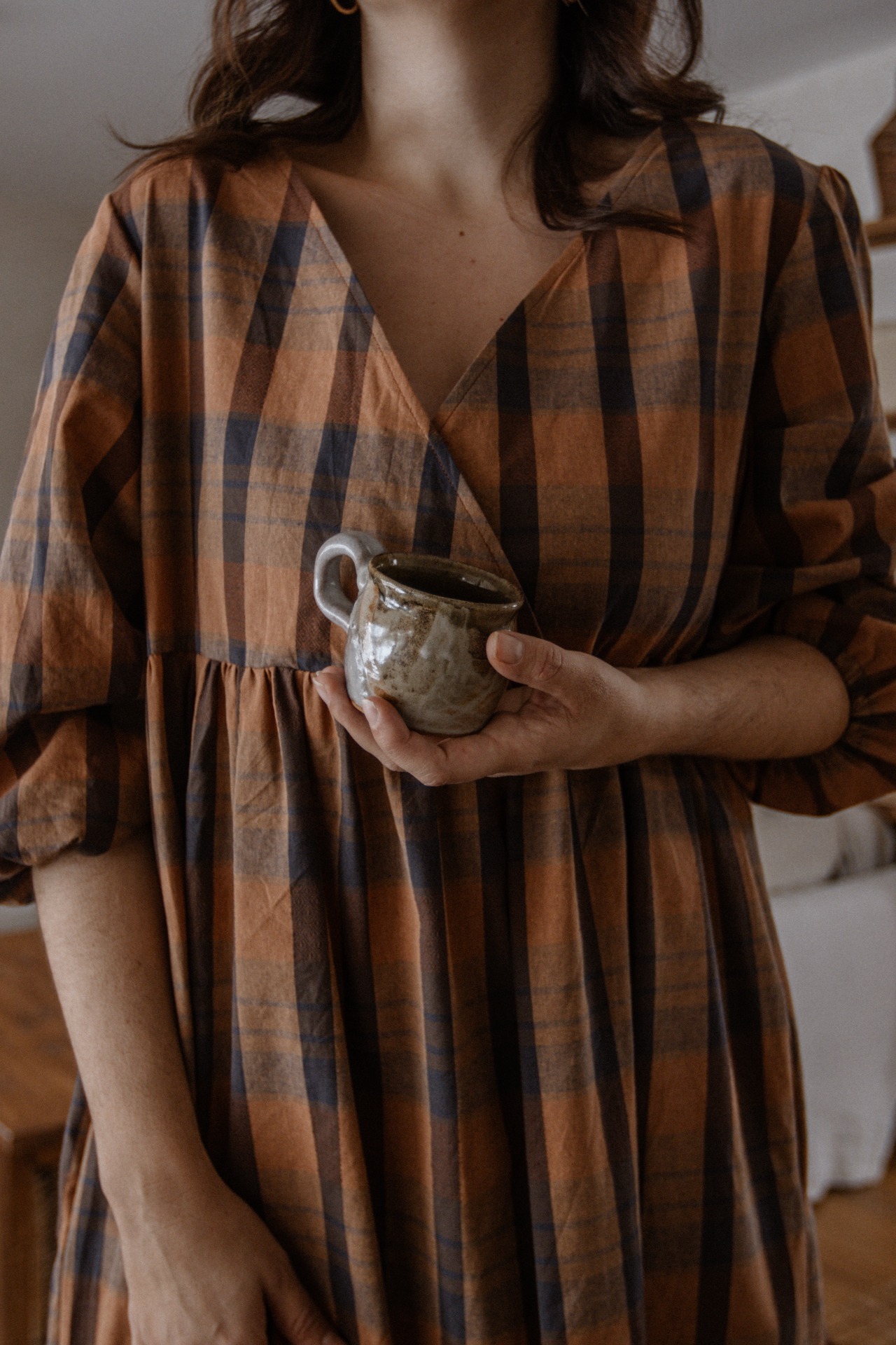Šaty sú v midi dĺžke s midi rukávmi, ktoré sú ukončené gumičkou.