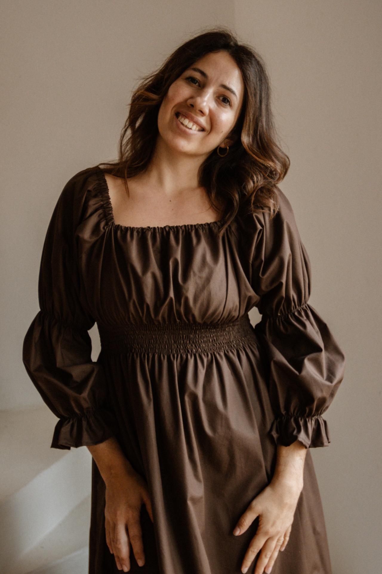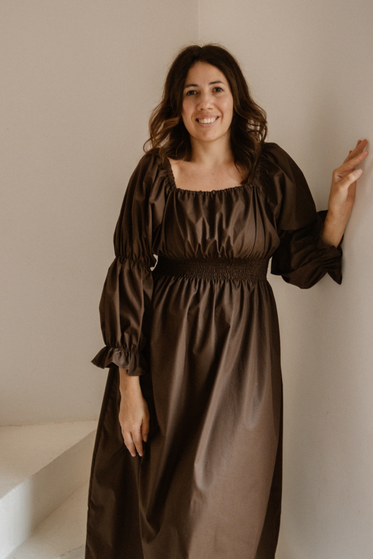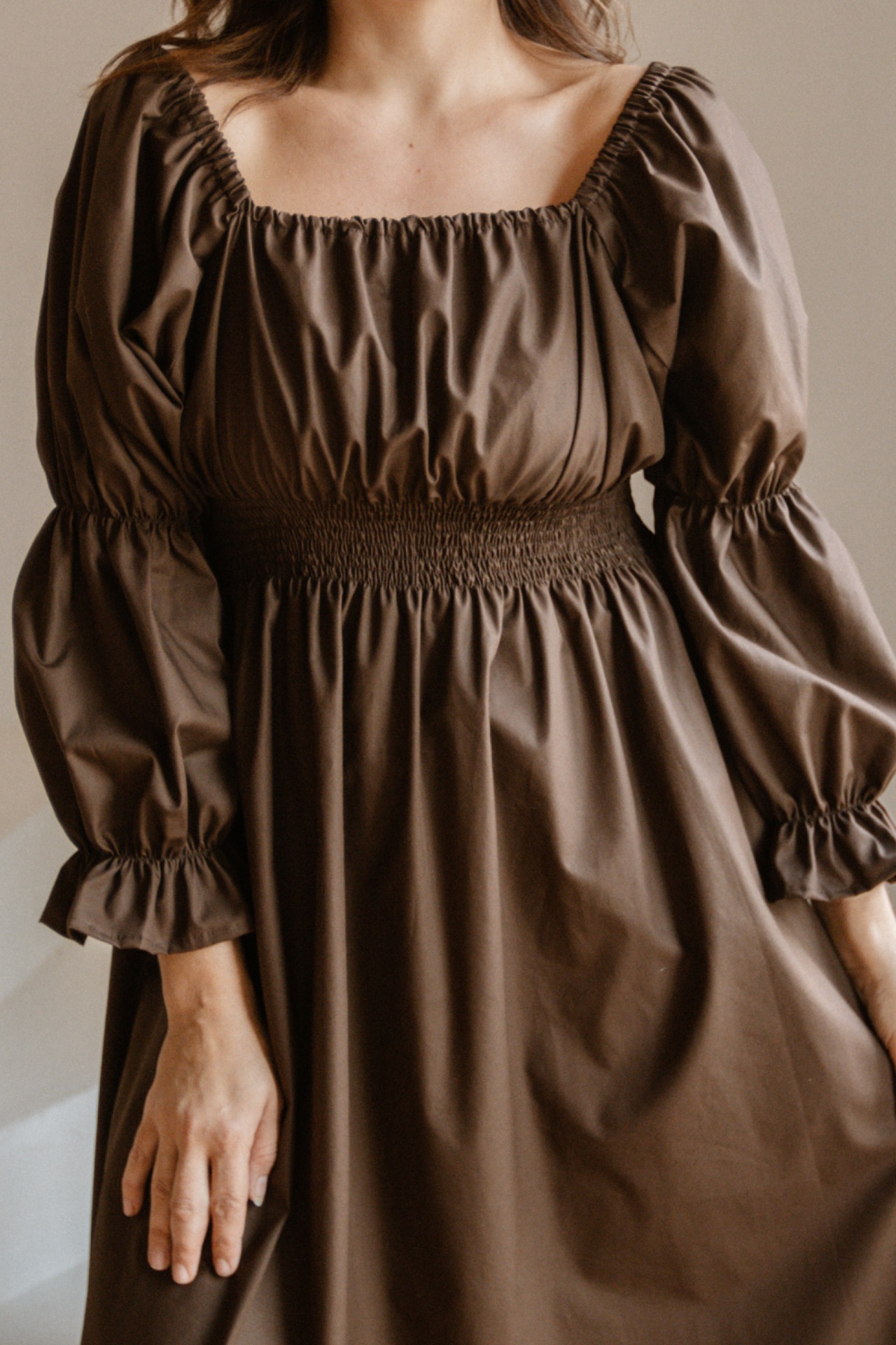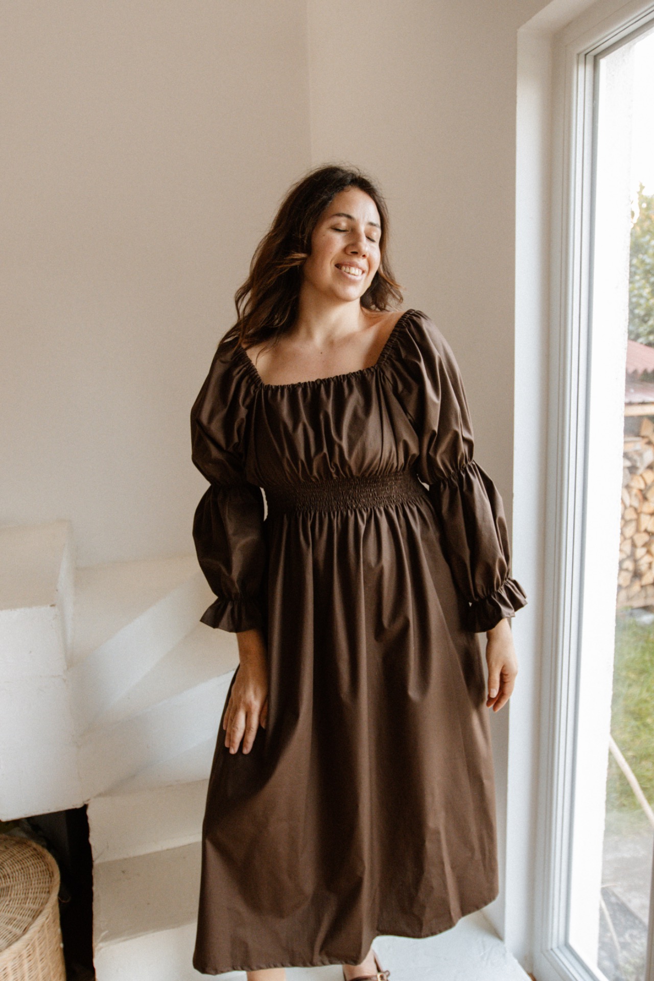 Z pohodlného bavlneného popelínu prinášame tieto nadčasové midi šaty s poloriaseným živôtikom. Vďaka gumičkám pekne vytvarujú vašu postavu a budete v nich vedieť aj dojčiť.