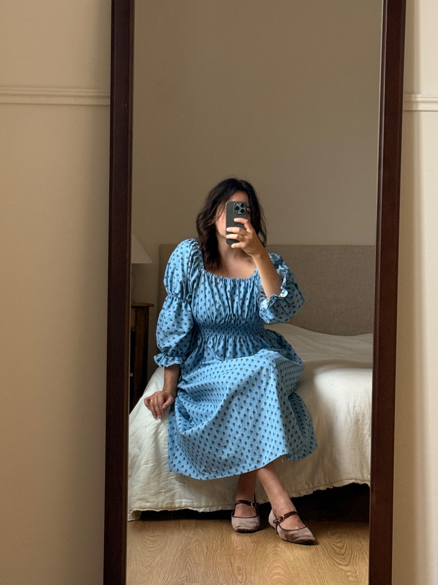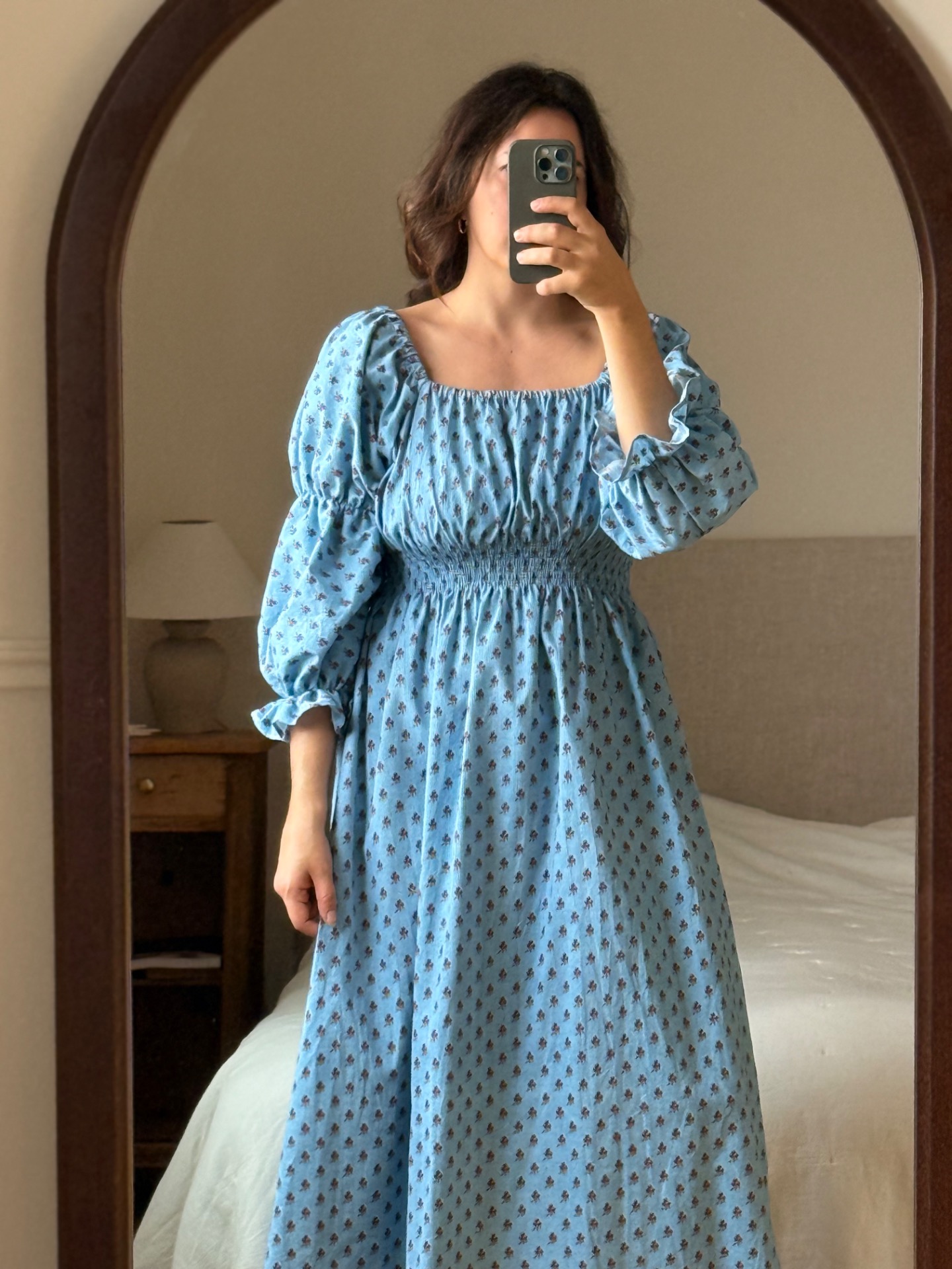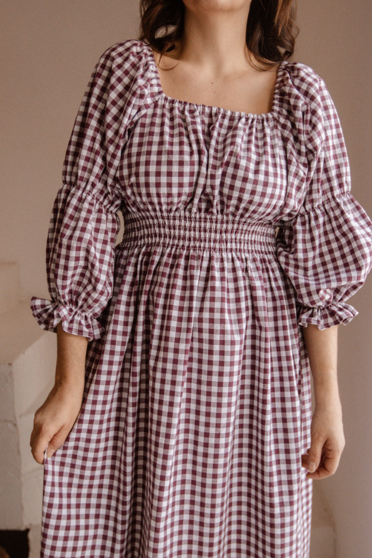 Z pohodlného bavlneného popelínu prinášame tieto nadčasové midi šaty s poloriaseným živôtikom. Vďaka gumičkám pekne vytvarujú vašu postavu a budete v nich vedieť aj dojčiť.