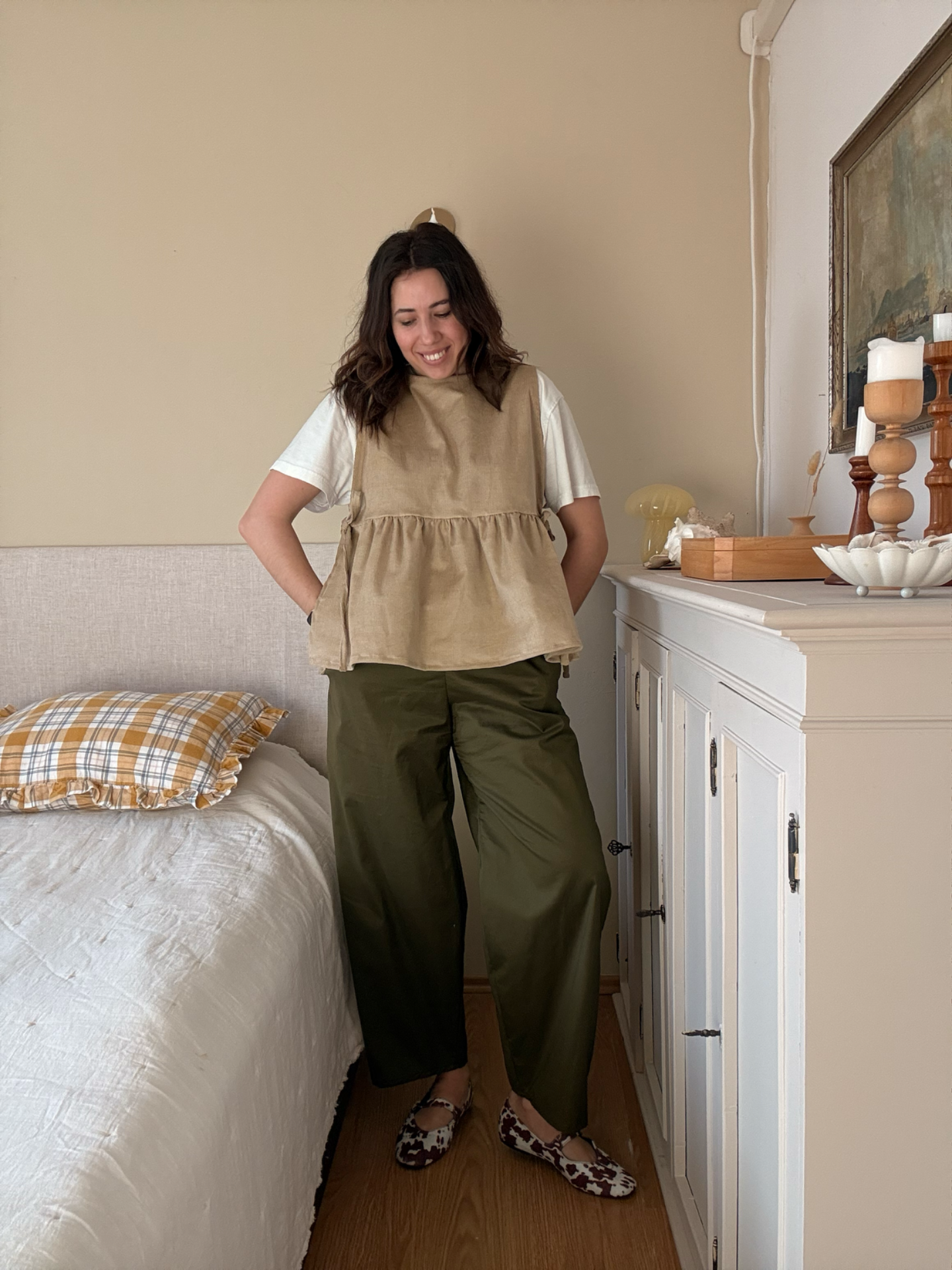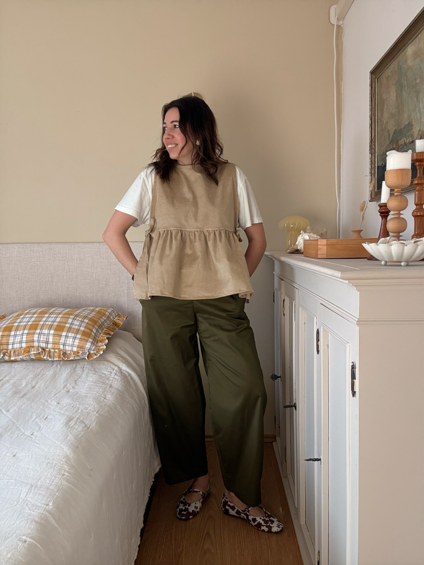 Keďže nohavice nevieme robiť tabuľkovo - každá sme predsa iná a jedinečná, potrebujeme od Vás obvod pása a požadovanú ďlžku v poznámke objednávky. Strih ukáže najlepšie ak si dĺžku nastavíte v okolí členkov.