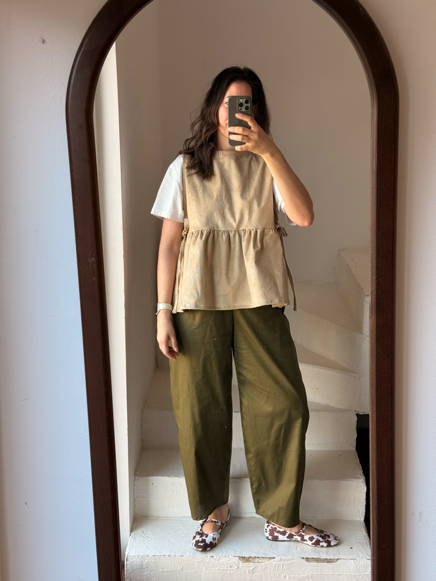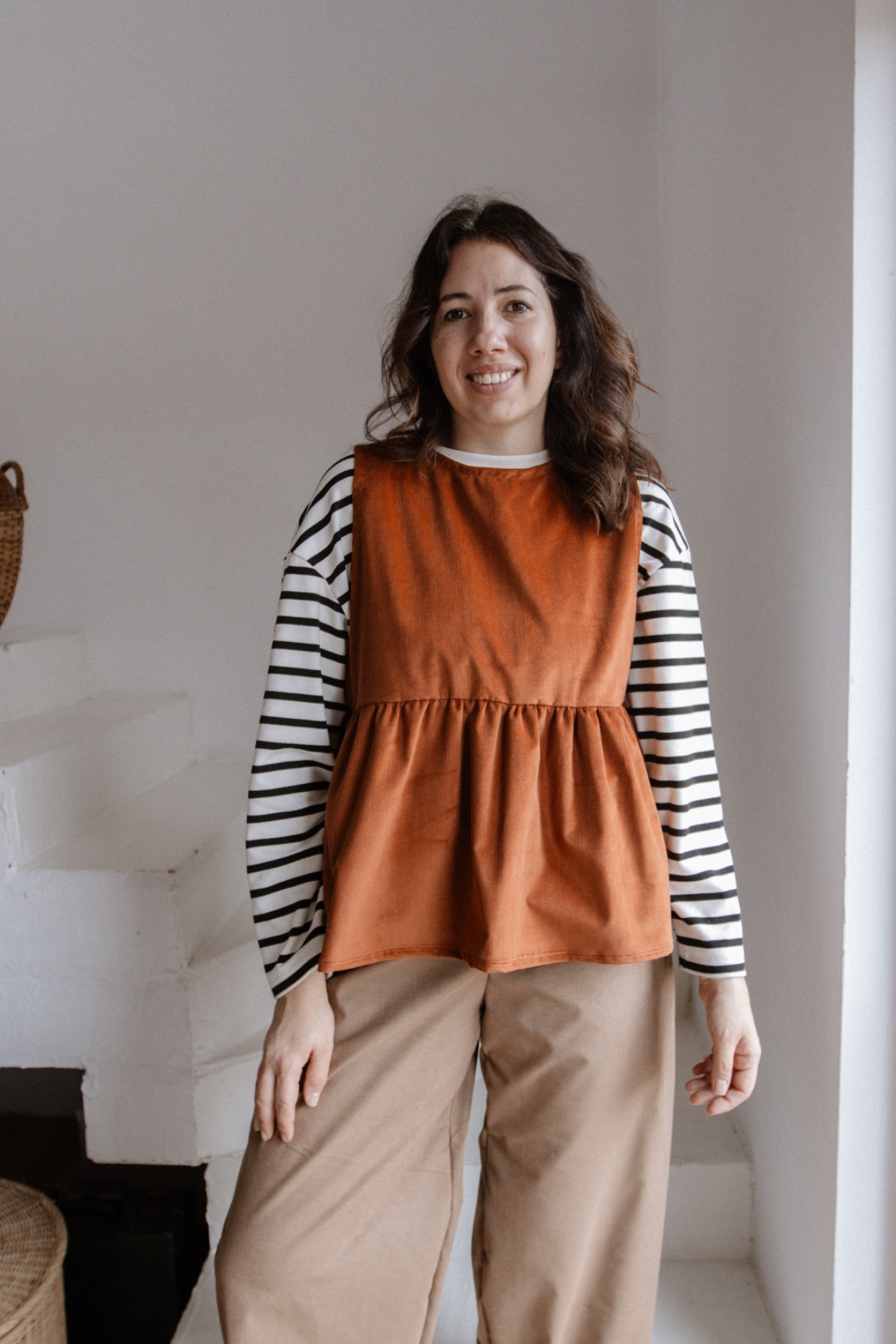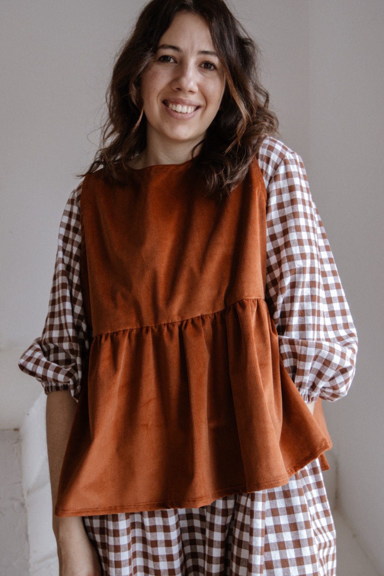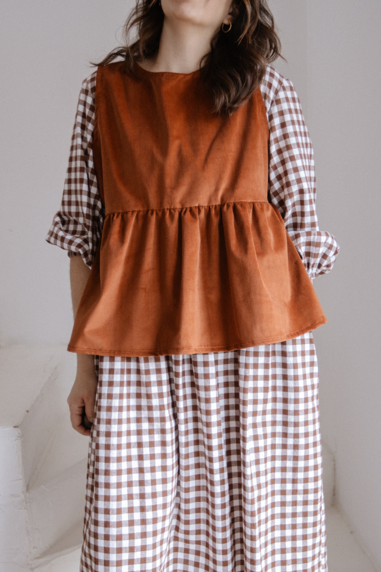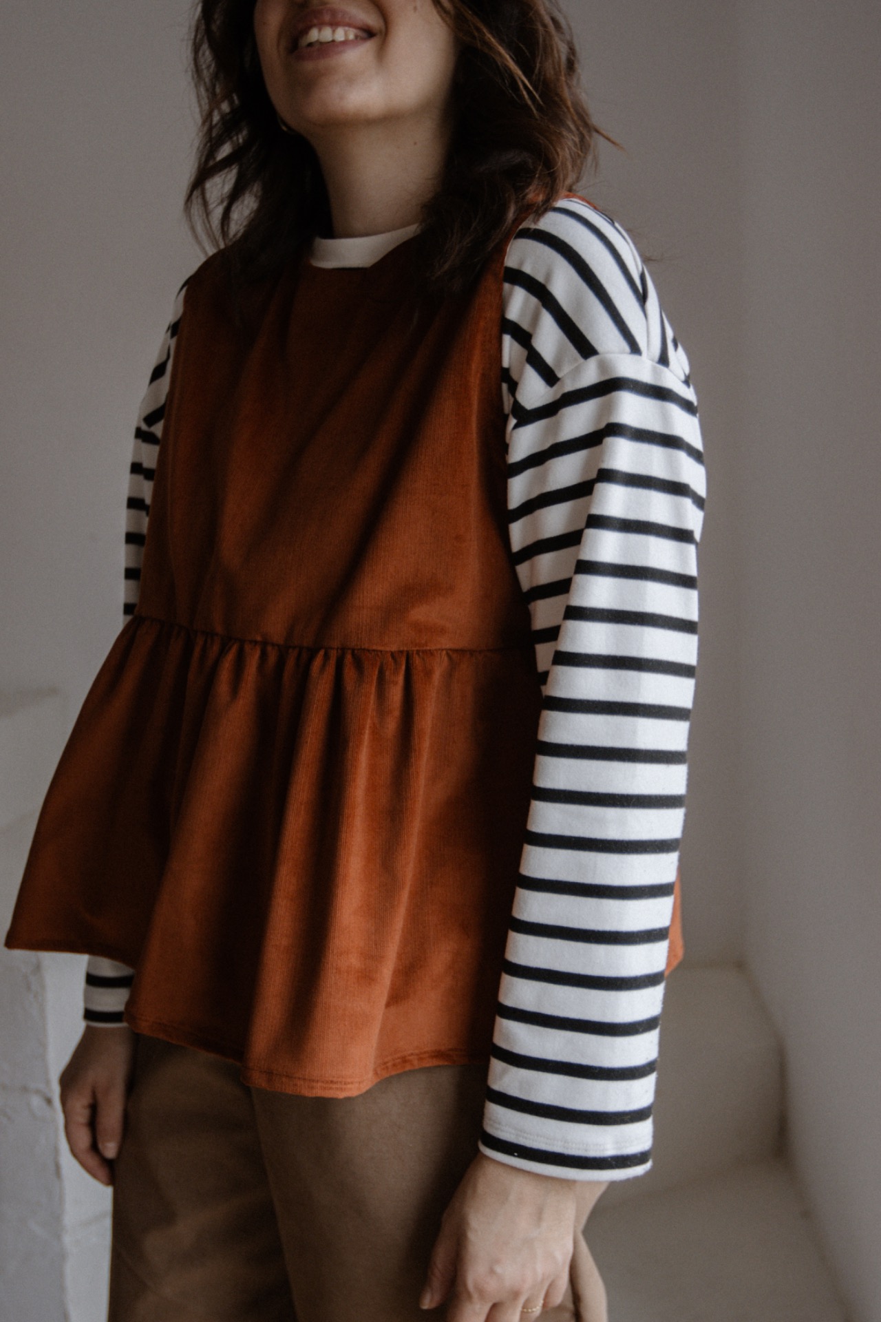 Volánová vesta z menčestru, ktorá nielen zahreje, ale osvieži aj jednoduchý outfit.